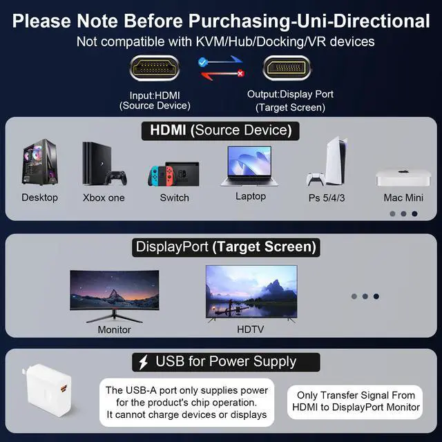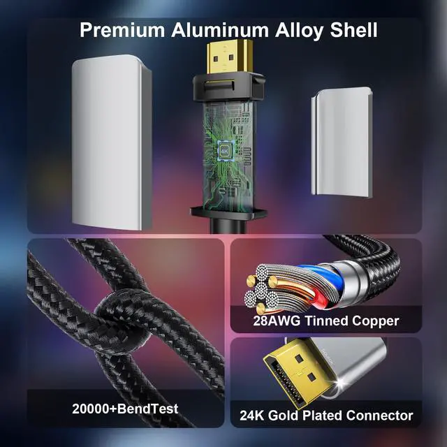 THANDBLE HDMI to DP Cable serves as the ideal bridge connecting modern devices to high-definition displays. It seamlessly converts HDMI signals from your gaming consoles, laptops, and other devices into DisplayPort signals without loss, supporting ultra-high resolutions up to 4K@60Hz. Experience breathtaking visual detail and smooth, immersive gameplay. Whether for professional office work, multimedia entertainment, or immersive gaming, this high-performance adapter delivers a stable and reliable solution