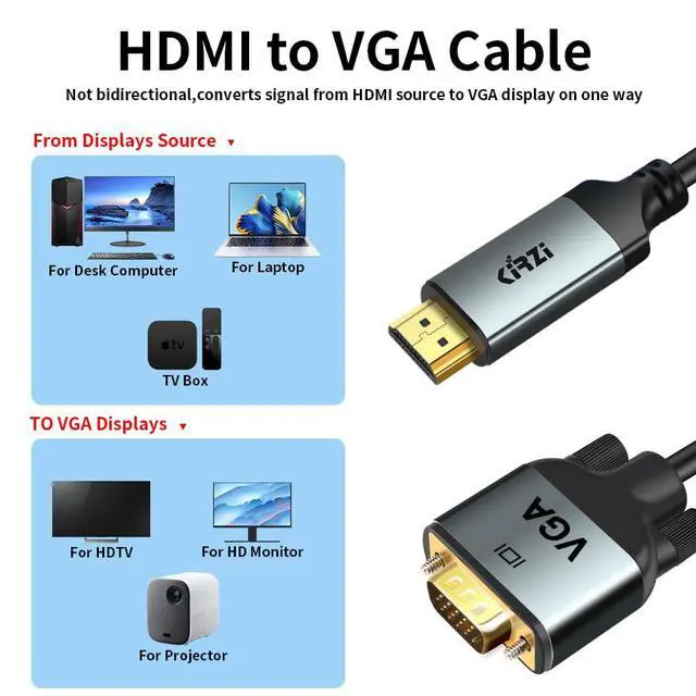 Versatile Connectivity: This HDMI to VGA cable allows seamless video transmission from HDMI-enabled devices to VGA monitors, projectors, and HDTVs.