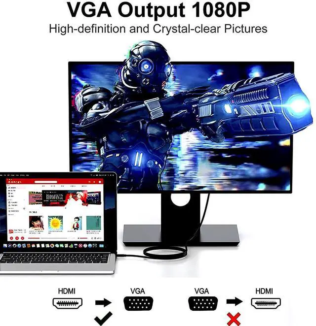 Maximum resolution support: This HDMI to VGA cable supports resolutions up to 1920 x 1080 (60Hz). 480i/576i/480p/576p/720p/1080i/1080p/60HZ