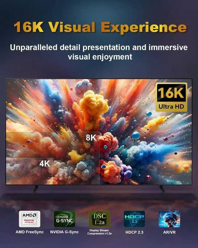 True 16K 60Hz Visuals -- This high-performance 16K display port to display port cable processes every signal particle with precision, ensuring accurate signal transmission for enhanced picture qualitydelivering crisp, stunning visuals with vibrant detail.