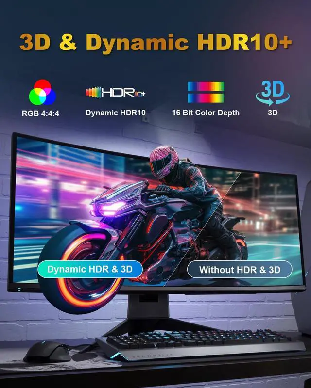 Engineered for Gaming -- Designed for competitive and immersive gameplay, this DisplayPort 2.1 cable delivers the full potential of your GPU and monitor. It supports high refresh rates, dynamic HDR, VRR, ALLM, DSC 1.2a, and GSync/FreeSync for smooth, tearfree visuals. With MST for multiscreen setups and 32bit audio passthrough, every detail stays sharp, responsive, and richly layeredwhether you're in fastpaced FPS matches or expansive AAA worlds.