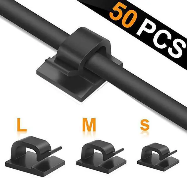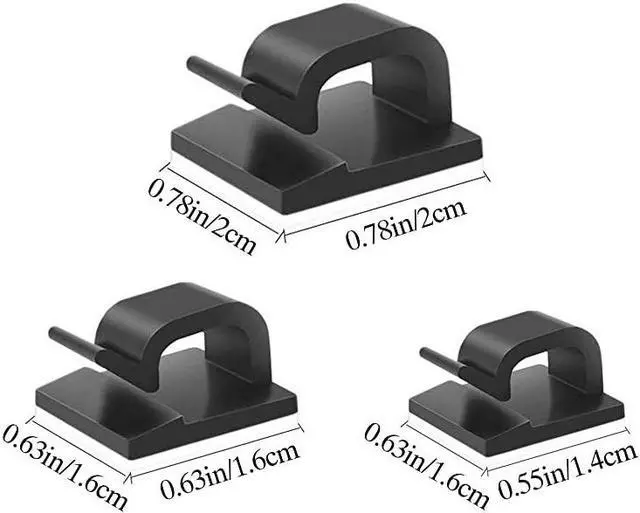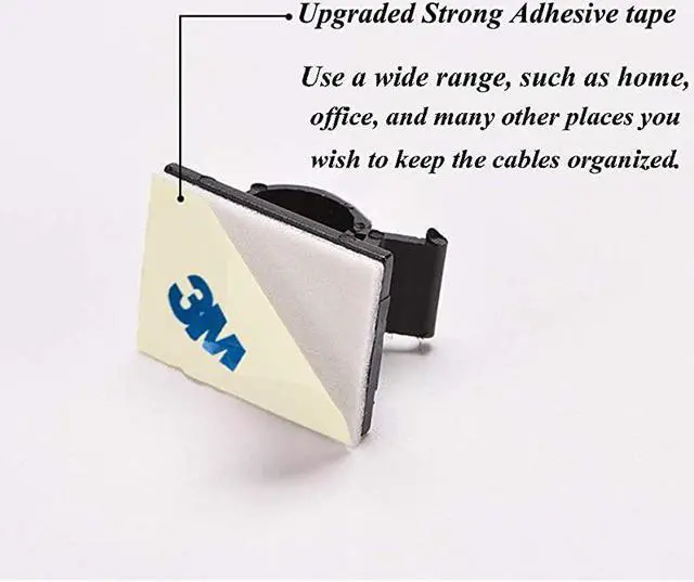 **********Self-Adhesive Clips Our cable holder clip comes with a strong adhesive pad that adheres to any flat and dry surfaces such as glass, metal or wood desks, tables and walls. Easy to remove without any residues and damage. *****Set of This package includes black sticky cable clips, Perfect quantity and size to meet your daily use requirements.