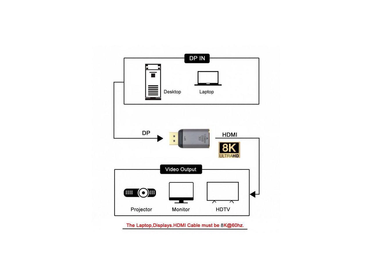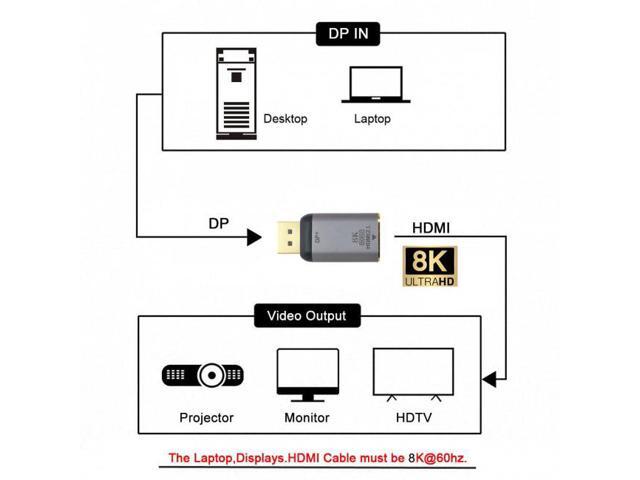 - DP x HDMI adapter supports 8K@60Hz, 4K@60Hz for DisplayPort Enabled Desktops and Laptops to Connect to HDMI Displays, enjoy home theater with 8K/4K high resolution.