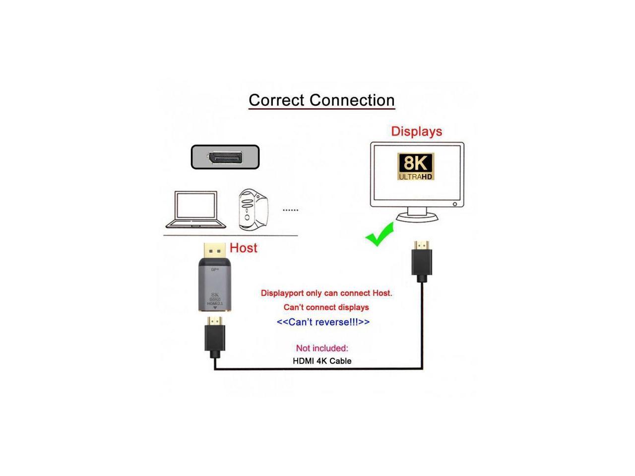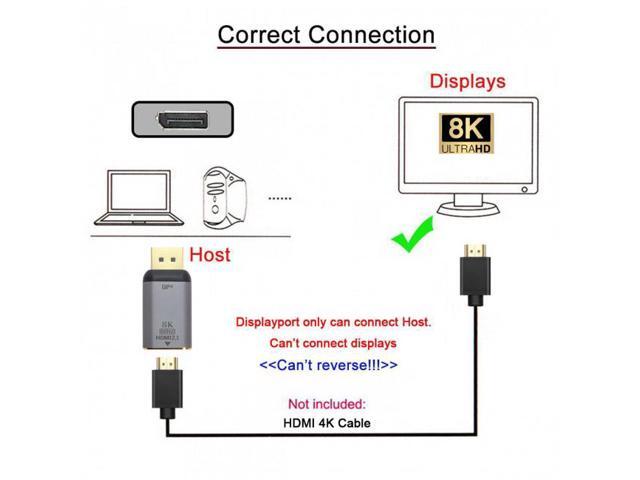 - This is a 8K DisplayPort to HDMI adapter, Don’t support HDMI to DP. It is not Bi-directional.