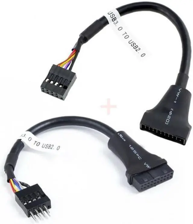 Let your USB 3.0 20pin device connected the USB 2.0 motherboard. or Let your USB 2.0 9pin device connected the USB 3.0 motherboard. Data speed: 480Mbps for USB 3.0 device. The package included two cables.