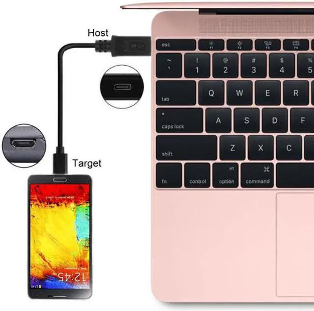 The type-C connector is host and the micro usb 2.0 connector is target.