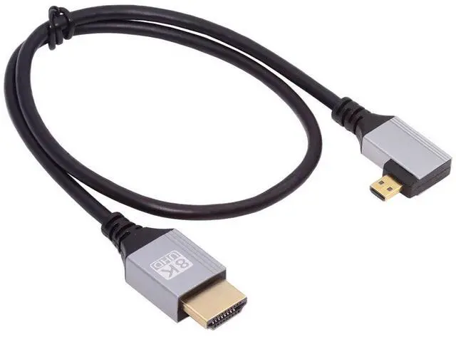 Jimier 90 Degree Right Angled Micro HDMI 2.1 Ultra Thin HDTV Cable 8K 4K Hyper Super Flexible Slim Cord Type-A to Type-D for Camera HDTV