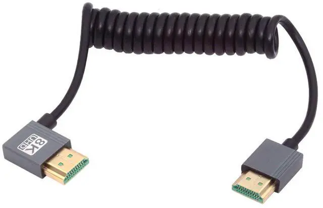 • HDMI 2.1 Male to HDMI Male 8K 60hz Stretch Coiled Cable Angled 90 Degree for HDTV Computer Laptop Monitor