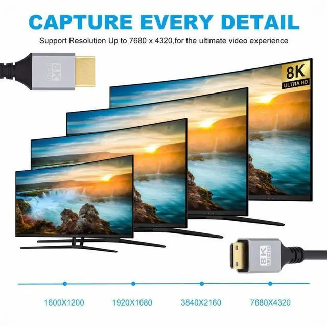 • HIGH SPEED: Industry standard 48Gbs bandwidth allows for unrestricted video in 8K (UHD) 1440p (QHD) and 1080p (HD). Enjoy unparalleled video quality, crisp and accurate sound, and buffer-free ethernet connection with these HDMI cables.