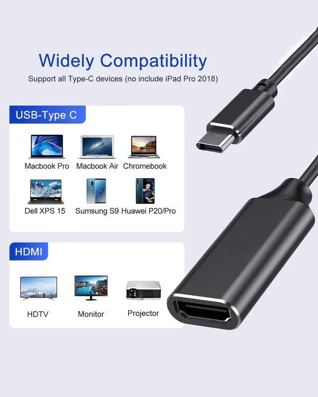 ??For Home Office??This USB-C to HDMI adapter allow you to connect one even two HDMI monitors/displays, up to 4K@60Hz resolution. No additional software required. Perfect solution for your USB-C Devices. Stay and Work at Home with Ease. ??USB C to HDMI Adapter?? This usb to hdmi adapter supports resolution up to 4K (3840 x 2160 @ 30 Hz); backwards compatible to 1080P and 720P. Stream high definition authentic audio and video from your computer with this adapter. ??Mirror and Extended Modes??Mirror or extend your screen contents with the high definition graphics images on your HDTV, monitors or projector in the resolution up to 4K@30hz, The HDMI adapter makes you work productively and gives you a clear visual experience.