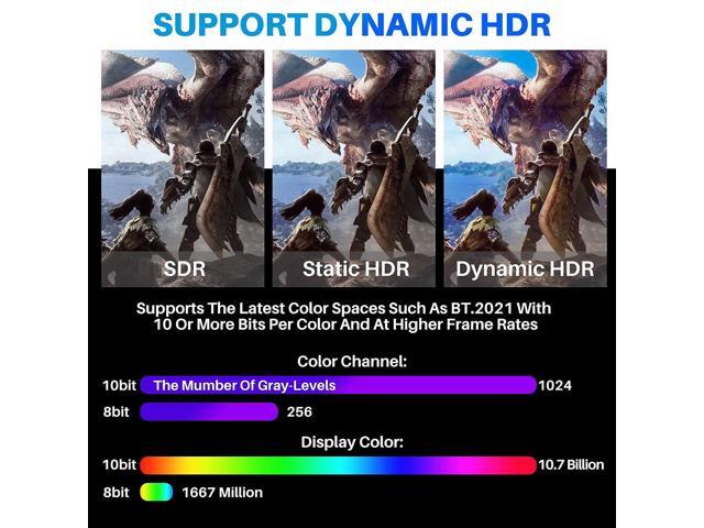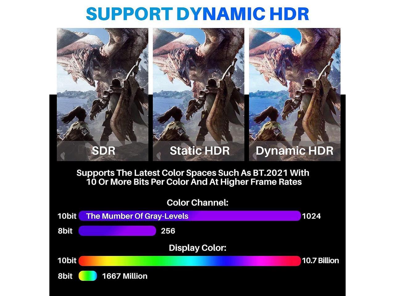- Top Technology 8K@60HZ HDMI Cable: This 8K HDMI Cable is compatible with 8K@60HZ and 4K@120HZ. With 8K HDMI's unique dynamic HDR and 12 Bit color processing technology, each scene of the video is every frame, with more ideal depth, brightness, detail, contrast and wider color gamut.