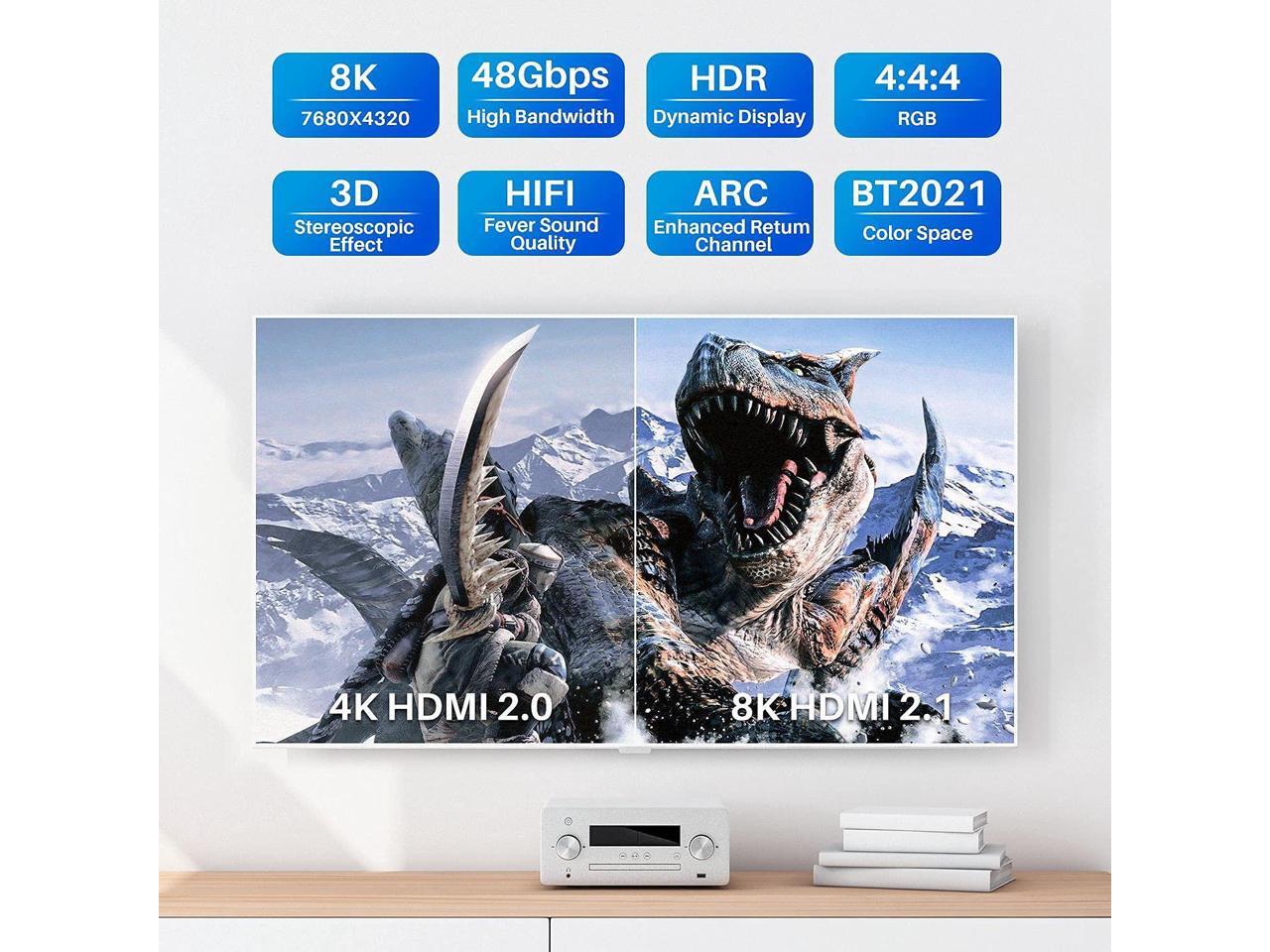 - HDMI Cable For Game Enthusiasts: It can break through 4K and achieve 8K ultra-high image quality. It can also achieve a super smooth picture of 4K@120Hz.