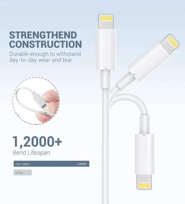 Wide Compatibility - MFi certified lightning cable ensure 100% compatibility on iPhone 12, 12 Mini, 12 Pro, 12 Pro Max, SE 2020, iPhone 11, 11 Pro, 11 Pro Max, XR , Xs , Xs Max, X, 8, 8 plus, 7, 7 plus, 6s, 6s plus, 6, 6 plus, SE, 5s, 5, 5c, iPad Pro, iPad Air, iPad Air 2, iPad mini, mini 2, mini 3, mini 4, iPad 4, iPod Touch (5 Gen), iPod Nano 7.