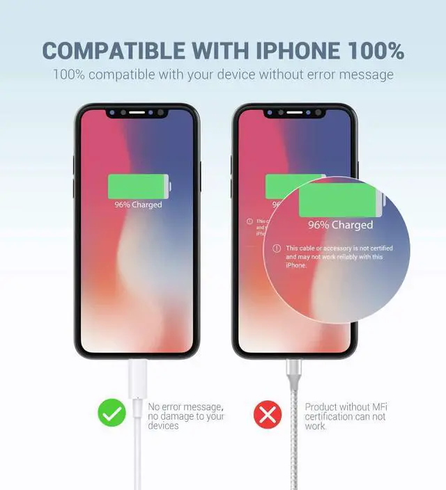 MFi Certified Lightning Cable - Every Novtech iPhone lightning cable has an original lightning chip inside, which ensure 2.4A fast charging and 480Mbps data transferring speed. Charging your devices without error messages and never getting heated up.