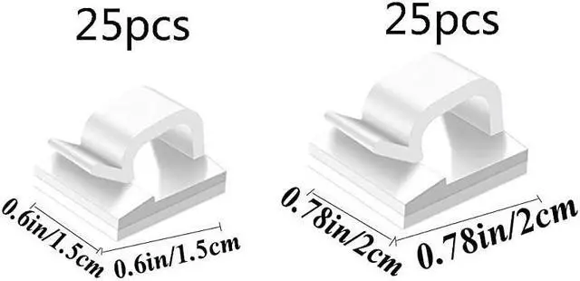 Color: whiteConstructed of quality plastic, long lasting use, these cable clips are great supplies for a wide variety of cables including computer / TV cables, power cords, USB cables, network cables and so on. Can be used in many creative ways. Free from Annoyance of disordered cables, space-saving Cable clip holders come to be extremely functional for you to keep wires uncluttered and neat, at the same time, creative methods to utilize them is available such as hang clothing, necklace, hand chain, strings, etc. Here are a few tips about the product: 1. Clean the dust with a duster before use,. 2. Please attaches to a smooth surface. 3.3M glue is best to be glued once and should not be disassembled repeatedly. 4. After applying the cable clips, press it for 30 seconds and wait 24 hours before use.