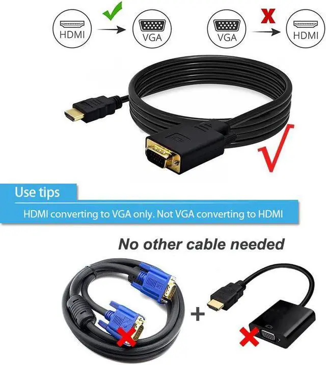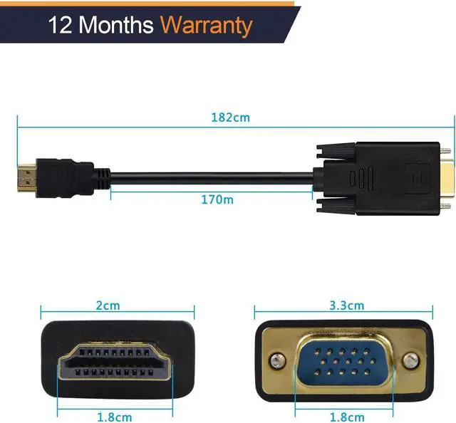 INCREDIBLE PERFORMANCE - The HDMI male to VGA Male cable supports resolutions up to 1920x1080@60Hz (1080p Full HD) including 720p?? 1600x1200?? 1280x1024 for high definition monitors or projectors; Gold plated HDMI connector resists corrosion and abrasion and improve the signal transmission performance; Molded strain relief increases cable durability. 18 MONTH WARRANTY - Exclusive Benfei Unconditional 18-month Warranty ensures long-time satisfaction of your purchase; Friendly and easy-to-reach customer service to solve your problems timely.
