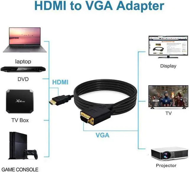 COMPACT DESIGN - The compact-designed portable Benfei HDMI to VGA adapter connects a computer?? desktop?? laptop?? or other devices with HDMI port to a monitor?? projector?? HDTV?? or other devices with VGA port; Tuck this lightweight gadget into your bag to do a business presentation with your laptop and projector?? or extend your desktop screen to a monitor or TV. SUPERIOR STABILITY - Built-in advanced IC chip converts HDMI digital signal to VGA analog signal; It is NOT a bi-directional converter and cannot transmit signals from VGA to HDMI. BROAD COMPATIBILITY - The HDMI-VGA adapter is compatible with computer?? pc?? desktop?? laptop?? ultrabook?? notebook?? Chromebook?? Raspberry Pi?? Intel Nuc?? Roku?? PS3?? Xbox One?? Xbox 360?? Wii U?? Set Top Box?? TV BOX?? or other devices with HDMI port; NOT compatible with Blu-ray player and devices with low-power HDMI ports such as SONY PS4?? Apple MacBook Pro with Retina Display?? Mac mini?? and Apple TV; For the low-power HDMI devices.