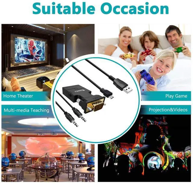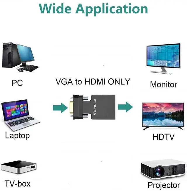 Portable Adapter: This VGA to HDMI adapter is a easily way to hook up older stylish computer laptop with VGA output to TV monitor or projector with HDMI input for video streaming game playing or content sharing. An HDMI cable (sold separately) is required for this VGA HDMI converter.