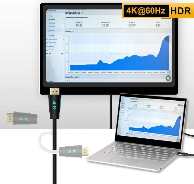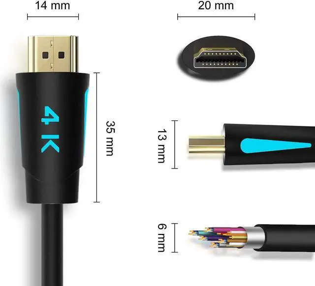 4K@60Hz 4:4: 4, 18 Gbps maximum bandwidth, backwards compatible with previous HDMI standards ULTRA HIGH SPEED - Featuring Ethernet, ARC and HDR. Gold-Plated connector for superior conductivity. Connect all your HDMI devices to your Ultra HD TV and take advantage of your home theater system GREAT PICTURE & SOUND - HDMI Cable 2pack supports 3D video, True HD Dolby 7.1 and DTS-HD Master Audio DOUBLE VIDEO - HDMI Cord support simultaneous delivery of 2 video streams (Dual view) at the same time 4K RESOLUTIONS - The cable can supports Highest Refresh Rates up to 240hz and 48-Bit Deep Color