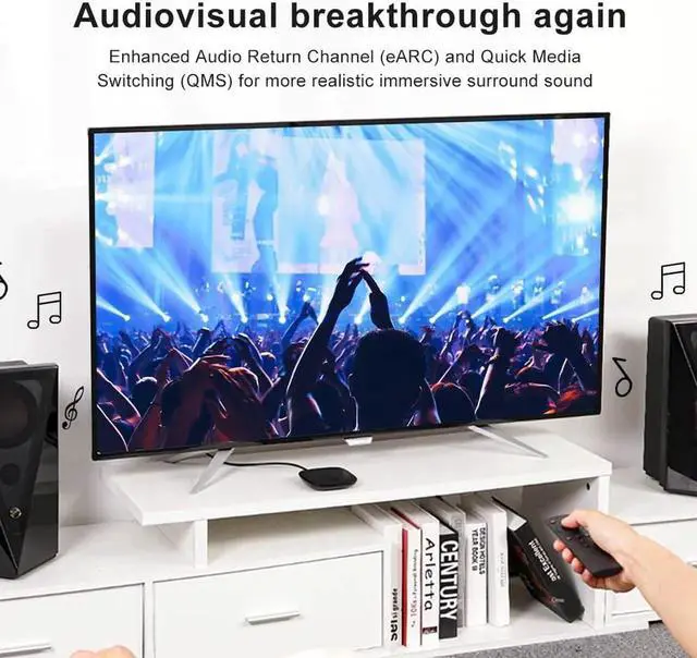 eARC supports the most advanced high bitrate home theater audio formats, object-based audio, uncompressed 5.1 and 7.1, and 32-channel uncompressed audio; Object-based audio provides an immersive multi-dimensional experience and enhanced audio detail and depth
