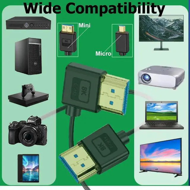 Additional Features- The 8K Micro HDMI to HDMI cable is compatible with computers, laptops, monitors, projectors, HDTVS, Blu-ray players, Fire TV, Apple TV, PS5, PS4, Xbox One, Switch, and more HDMI port devices. Backward compatibility with HDMI 2.0 b/2.0a/1.4/1.3/1.2/1.1. Supports mirroring and extension modes.
