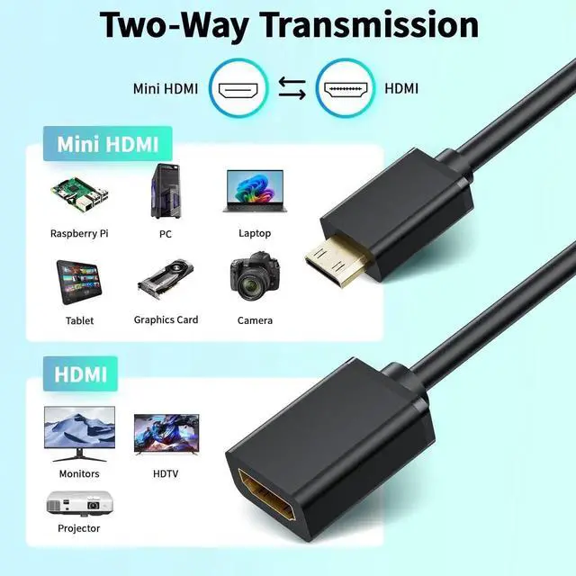 • Only for Mini HDMI Devices: Compatible with DSLR Camera, Geforce GT 430 graphics card, video card, Raspberry Pi Zero/Pi Zero W, Pico Projector, NUC barebones desktop, Sony HDR-XR500, Nikon D3200/D810, laptop, tablet, portable monitor, HDTV, and more devices with Mini HDMI port