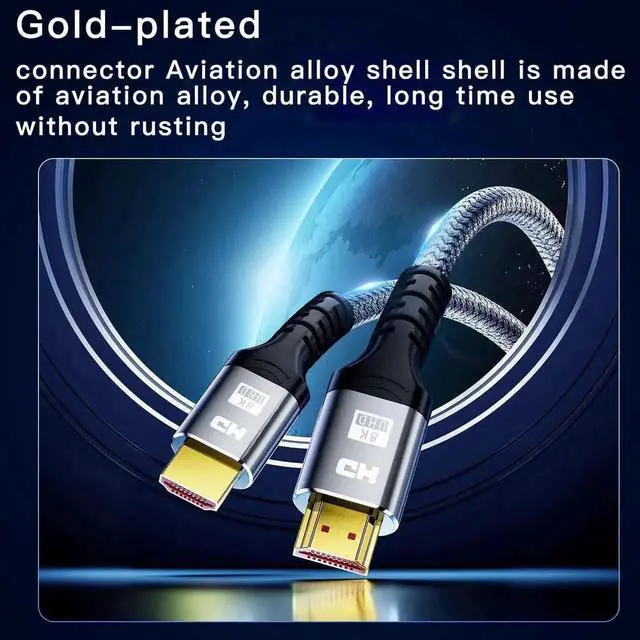 8K@60HZ HDMI 2.1 Cable The 8K HDMI Cable comply with HDMI 2.1b specification, uses the most cutting-edge technology, is compatible with 8K@60Hz and 4K@240Hz, increased bandwidth capability supports up to 48Gbps.. With 8K HDMI's unique dynamic HDR and 12 Bit color processing technology, each scene of the video is every frame, with more ideal depth, brightness, detail, contrast and wider color gamut.