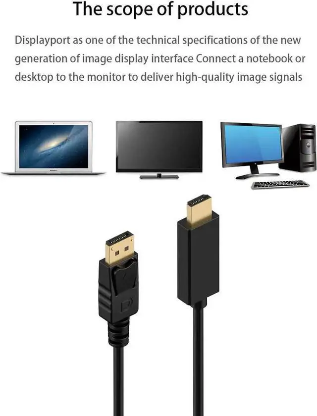 INCREDIBLE PERFORMANCE - The DisplayPort male to HDMI male cable supports resolutions up to 1920x1080@60Hz (1080p Full HD) including 720p, 1600x1200, 1280x1024 for high definition monitors or projectors; And also supports audio transmission with uncompressed digital 7.1, 5.1 or 2 audio channels.