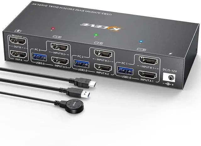 KVM Switch Dual Monitor 3 computers 2 monitors