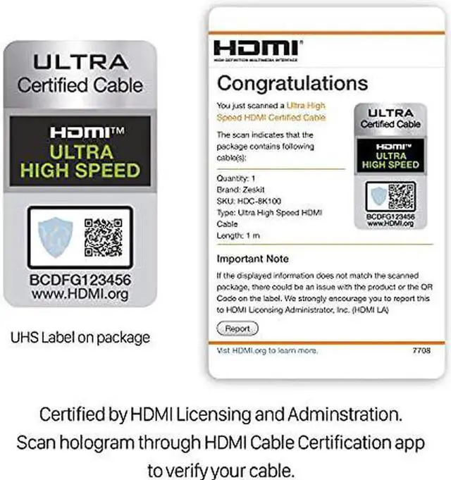 Ultra High Speed HDMI Cable Certified (w/ Hologram Sticker)
