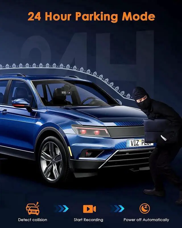 24 Hours Protection Parking ModeThe parking monitor will turn on the dash cam if an impact is detected when parked. It helps to capture important evidence in the event of a hit-and-run.