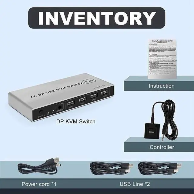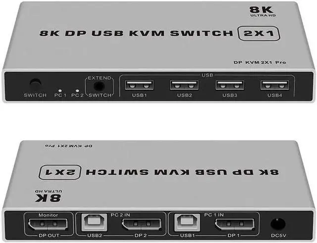 A 2-portUSB DisplayPort KVM switch that allows users to switch between 2 computers from single USB keyboard and Mouse. The device is simple and convennt to install