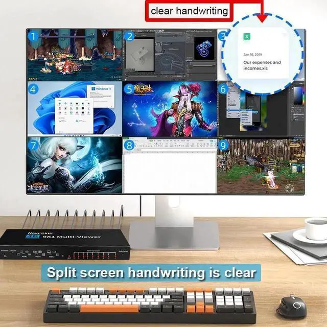 HDMI Multi-Viewer: WrixWric HDMI 9x1 Quad Multiviewer can connect 9 HDMI input signal device (Security Camera, DVD, TV Box, Xbox, Roku, Computer etc. ) to one HD display screens simultaneously, Easily realize multi-combined functions such as work, monitoring, leisure and entertainment. You can see 9 different HDMI input sources through an HDMI output screen to achieve 4K multi viewers, simple and efficient, avoid frequent plugging.