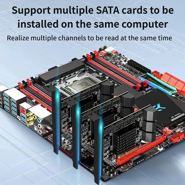 10 Ports SATA 3.0 Adapter Card: Acasis SATA card is equipped with 10 SATA 3.0 interfaces and supports the simultaneous connection of 10 SATA hard disks, the transfer speeds up to 6Gbps