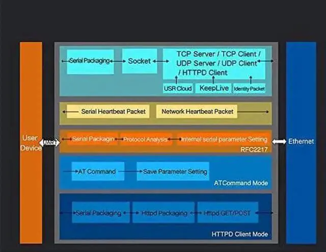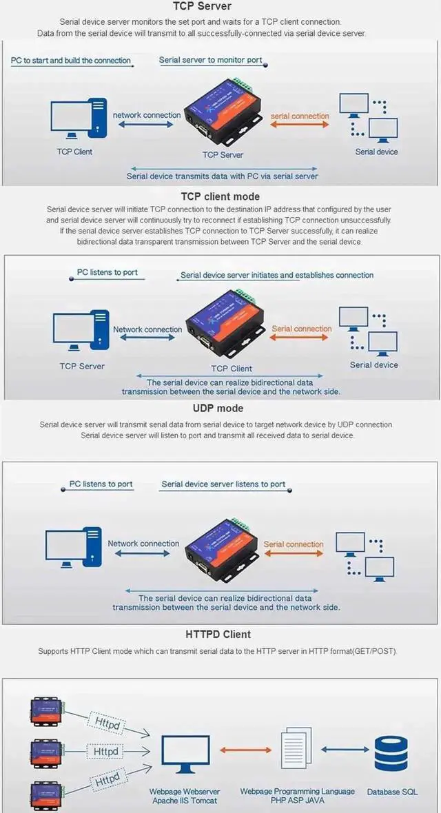 Work Mode: TCP Server, TCP Client, UDP Client, UDP Server, HTTPD Client