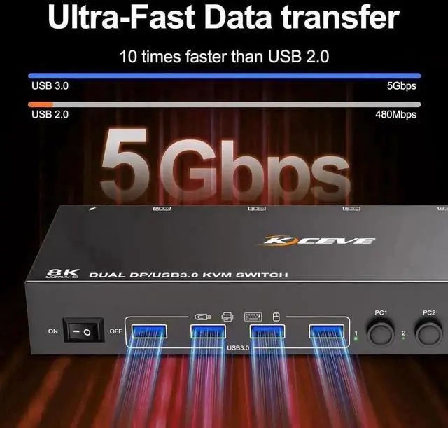 • [With 4 USB 3.0 USB Ports] This KVM switch with 4 USB 3.0 port for sharing mouse, keyboard, USB printers, scanners, etc,. USB 3.0 transmission is more stable and faster, if you are looking for a USB 3.0 version KVM switch this will be a good choice!