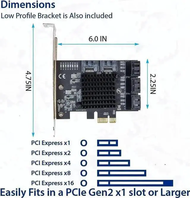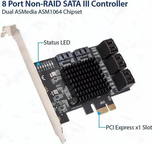 8 Port SATA III to PCIe 3.0 x1 Non-RAID Expansion Card Dual ASM1064 Genuine 6.0bps with 8 Drives Attached Low Profile Bracket, SI-PEX40165
