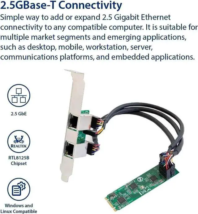 2.5 Gigabit network card Compatible with a broad range of operating systems, including Windows 10, 8/ 8.1, 98SE, ME, 2000, XP, XP-64bit, Vista, Vista-64bit, 7, 7-64bit, Linux