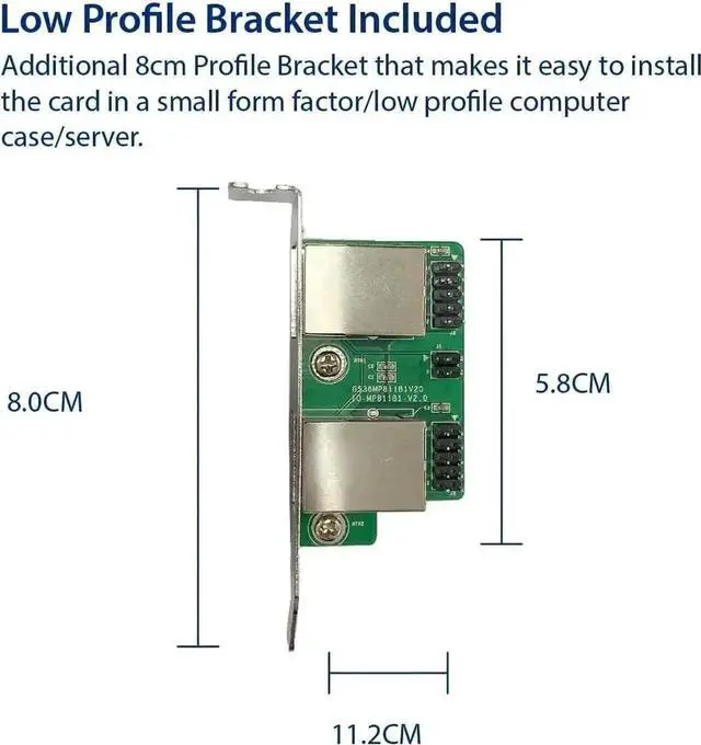 The high quality PCIe 2.5 Gigabit NIC with 12cm profile bracket and Additional 8cm Profile Bracket that makes it easy to install the card in a small form factor/low profile computer case/server.