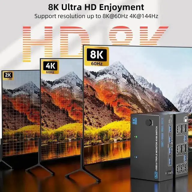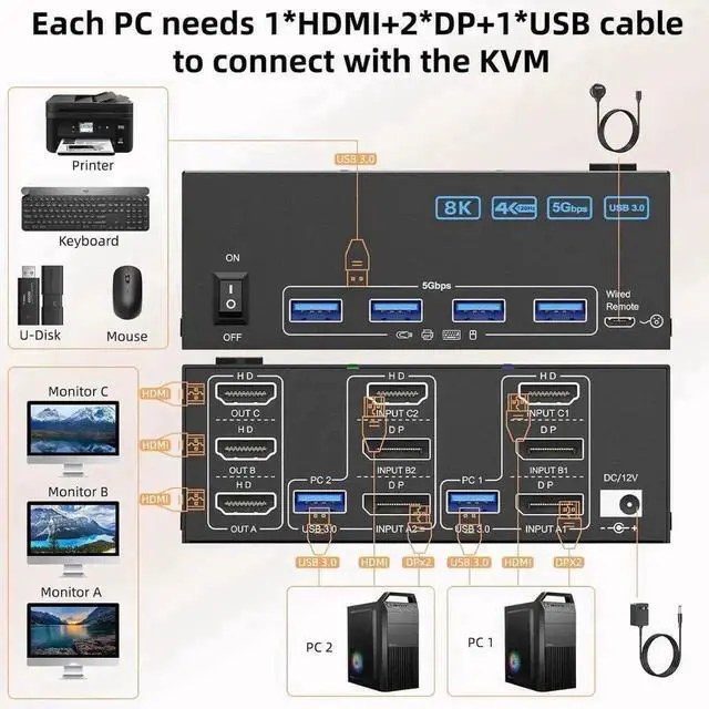 set of wired/wireless keyboard mouse controls two computers, sharing 3 monitors, suitable for users with 2 computers and 3 monitors, supporting Mirror mode and extended Mode, helping you balance work and play.
