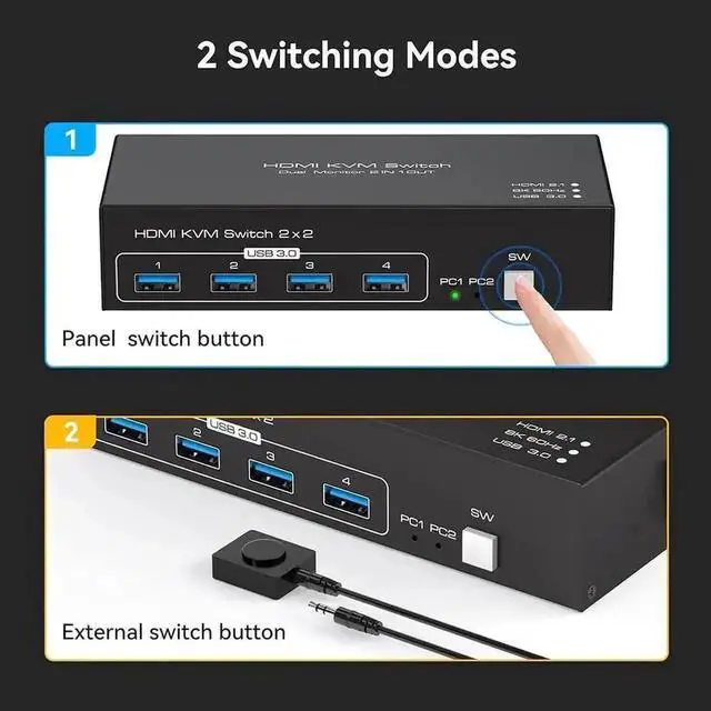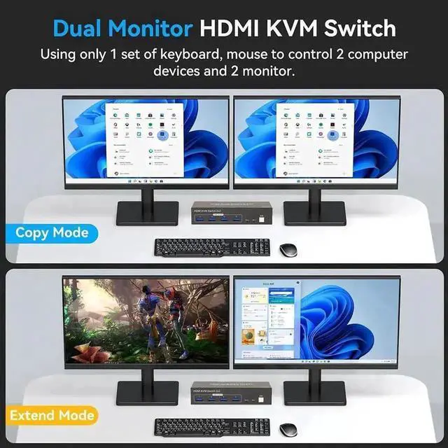 KVM Switch HDMI 2 monitors 2 computers supports 2 modes