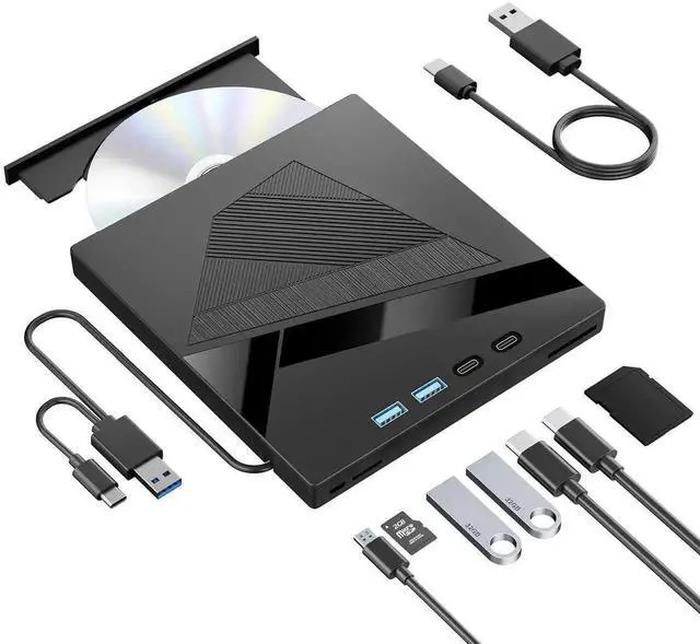1.Our external CD drive combines reading and burning in one, and can also be used as a 7-in-1 adapter.