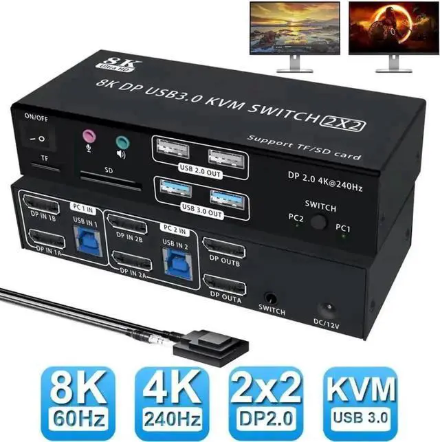 - Product Type: 8K DP USB 3.0 KVM Switch (2 in 2 out)