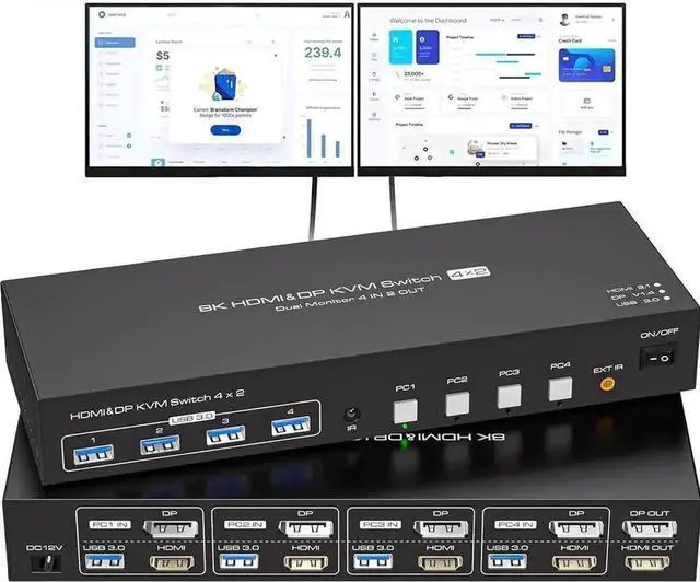 USB 3.0 DP+HDMI KVM Switch Dual Monitor