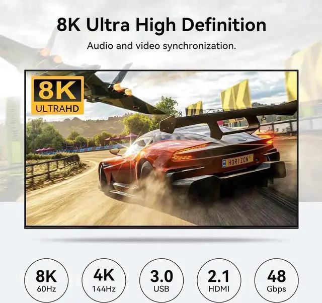 2.8K@60Hz Ultra-High Definition Resolution: The kvm switch dual monitor supports up to 8K@60Hz resolution, providing a truly realistic and vibrant display. It is also backwards compatible with 4K@60Hz, 1080P@60Hz, and 720P@60Hz resolutions. Note: To achieve the highest resolution, please make sure the signal source, HDMI cable, and display all support 8K@60Hz