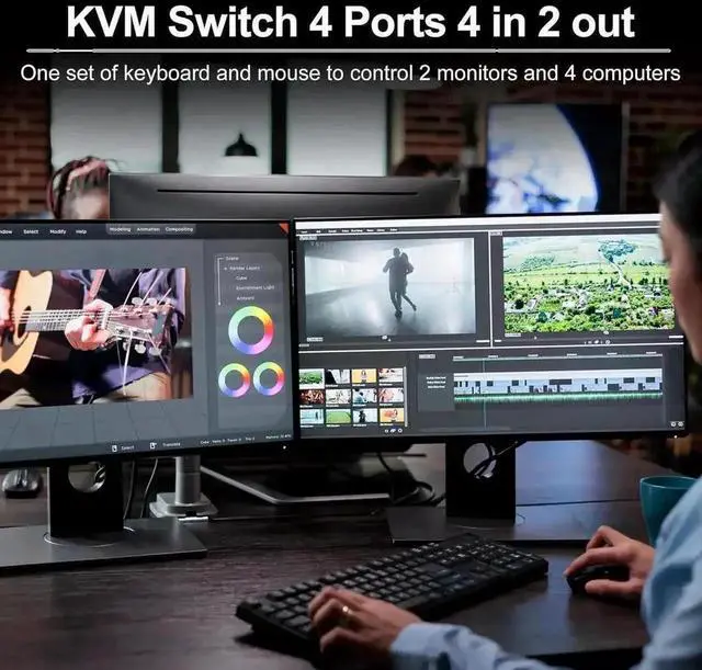 Latest version of KVM - More Compact 8K HDMI Dual Monitor KVM Switch 4 computers share 2 monitor and 4 USB devices