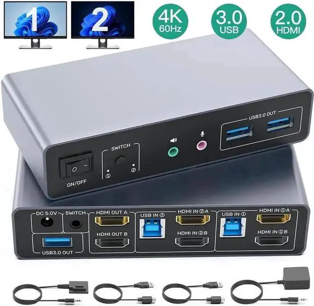 The HDMI KVM switches 2 monitors 2 computers supports up to 4K@60Hz screen display. Backward compatible with 4K@30Hz, 1080P.