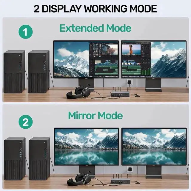• KVM Switches 2 Monitors 2 Computers: This HDMI KVM Switch allows the connection of 2 computers and 2 monitors. 2 computer input ports support 2 HDMI ports. The 2 monitor outputs support 2 HDMI monitors. And supports extended and mirrored modes.