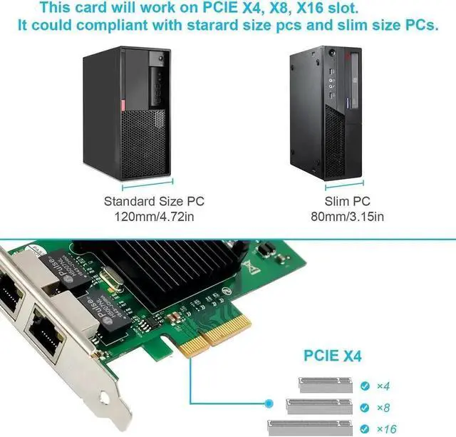PCIe Gigabit Network Card adds two 10/100/1000 Mbps compatible RJ45 Ethernet ports to a PCI Express-enabled client, server or workstation, providing a convenient addition or replacement networking interface.