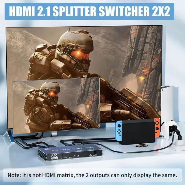 Support 1 signal to display on 2 montior, can not display 2 different signal at the same time